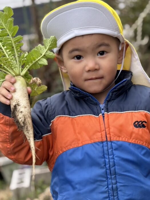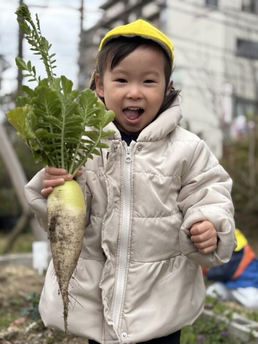今年は全体的に成育不良でしたが、大きく育った大根も収穫することができました。